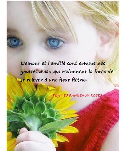 Coucou ;) Bonsoir les copinettes :x Poffe c'est beau tout blanc :-q nous surtout de l'eau sans discontinuer , des barrages un peu partout , routes coupées ! je ne sais pas si ça va aller pour Patrice pour aller bosser :-O il pleut trop pour avancer voir ! Marceau t'a gâtée , pourquoi des roses blanches ? ;) ça va Aurélie ? Nath :x , Dany courage , Josette aussi et Nicole pareil d'après les infos :-S Je vous souhaite une bonne soirée à toutes et courage :x :x :x :x :x :x L'amitié enfantine.. L’amitié occupe une place essentielle dans la vie des enfants. C’est le premier lieu de découverte de l’altérité en dehors du cercle familial. Un monde rien qu’à eux où naissent des émotions fortes, de grandes joies mais aussi parfois des peines tout aussi grandes. « C’est mon meilleur ami ! » « Je veux plus être son ami, il est nul ! » Souvenez-vous de ces périodes tellement intenses où nous étions “fous d’amitié” pour une nouvelle amie/ un nouveau copain en qui nous voyions, du haut de nos sept ans, tellement de choses fascinantes : « elle avait des baskets bleues et même, elle jouait de la guitare », « il avait des Rollers et des taches de rousseur » ! Les premières amitiés donnent aux enfants l’occasion de s’ouvrir au monde, de prendre pour la première fois l’initiative de construire une relation hors de la cellule familiale et de découvrir la différence chez leurs pairs: " celui qui a un chien, celui qui est enfant unique, celui qui a “deux maisons”… Explorer un autre fonctionnement familial que le sien, que l’on croyait jusqu’alors universel, est très enrichissant et fondateur pour nos enfants, c’est pour cela que l’amitié occupe une place essentielle dans leur vie : elle leur permet de s’ouvrir aux autres et de se construire dans ce rapport aux pairs. Très Bonne soirée à Toutes tous |